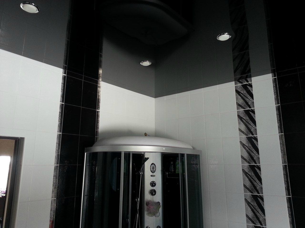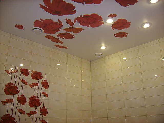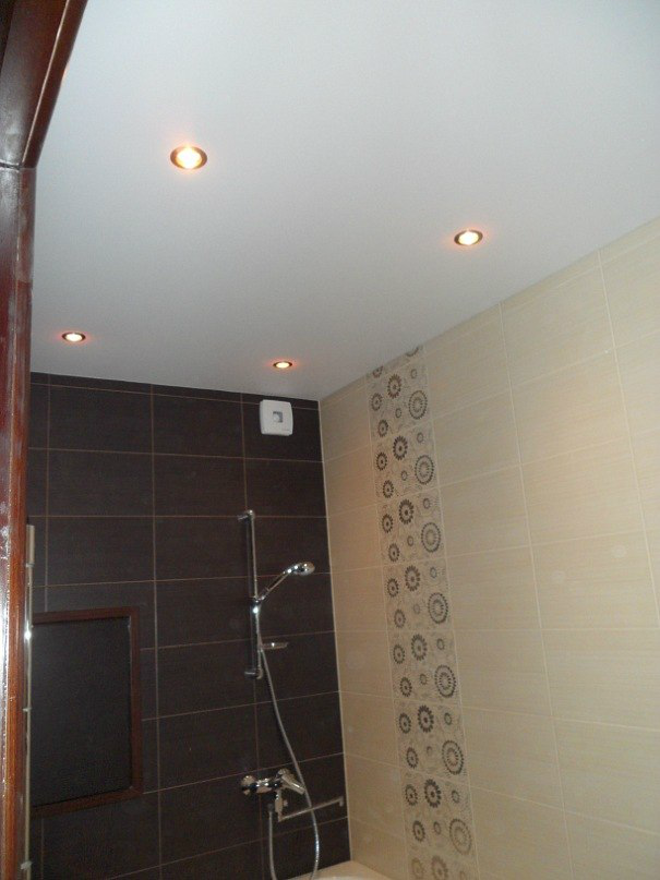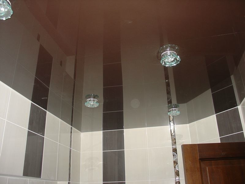 Натяжной потолок в ванной комнате.