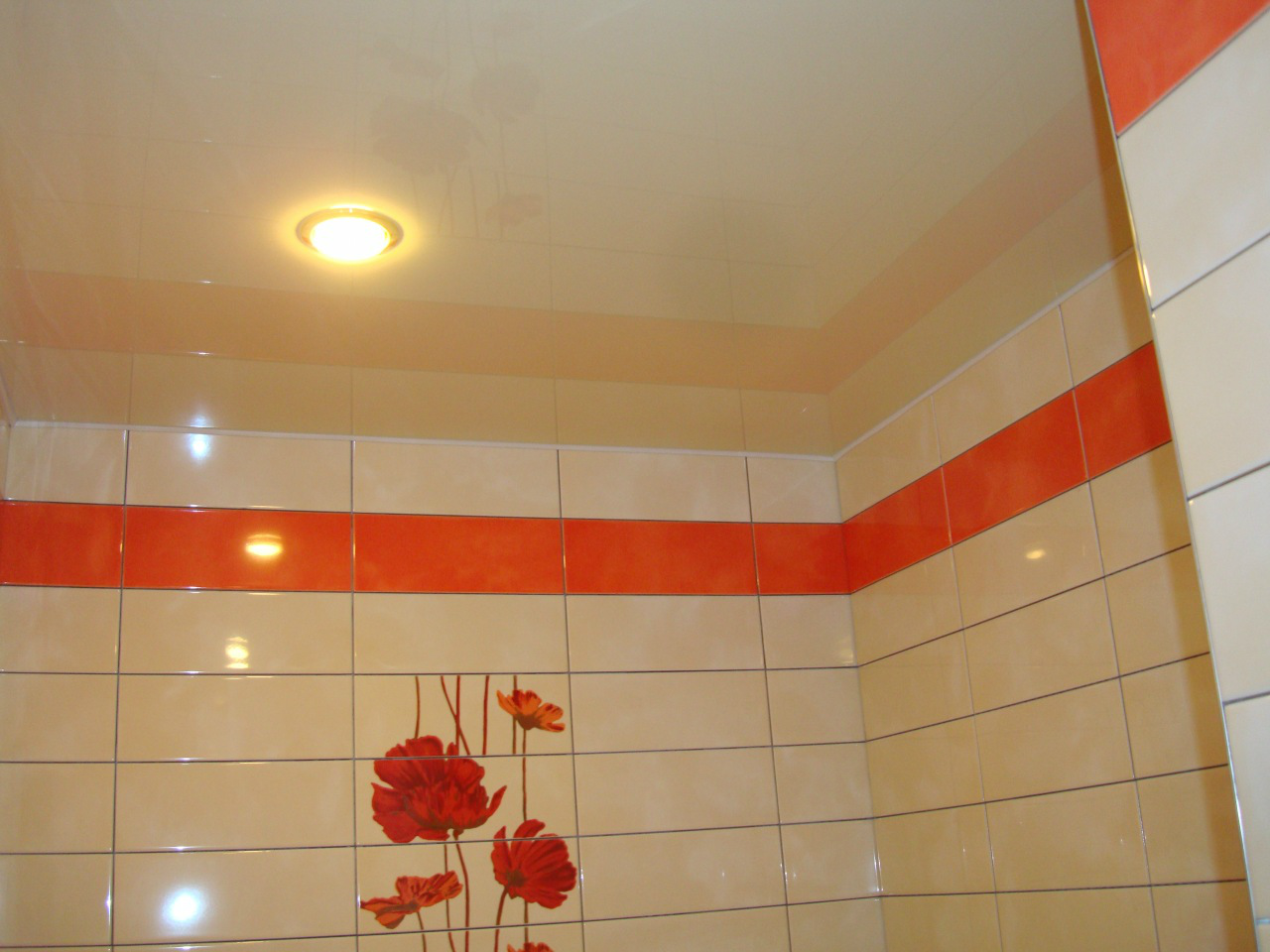 *Термостойкость. Горячие пары и постоянная повышенная влажность никак не скажутся на внешнем облике потолка. В отличие от обычной побелки, такой потолок просто физически не может намокнуть, набухнуть и начать расслаиваться или трескаться при высыхании, он не поменяет своего цвета и уж тем более не пожелтеет.